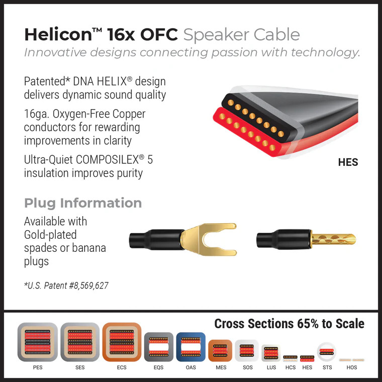 Model Helicon 16x powstał pierwotnie jako przewód do wewnętrznego okablowania kolumn i projektów DIY, jednak dzięki bardzo dobrym właściwościom dźwiękowym zaczął być stosowany także jako klasyczny kabel głośnikowy w systemach hi-fi.